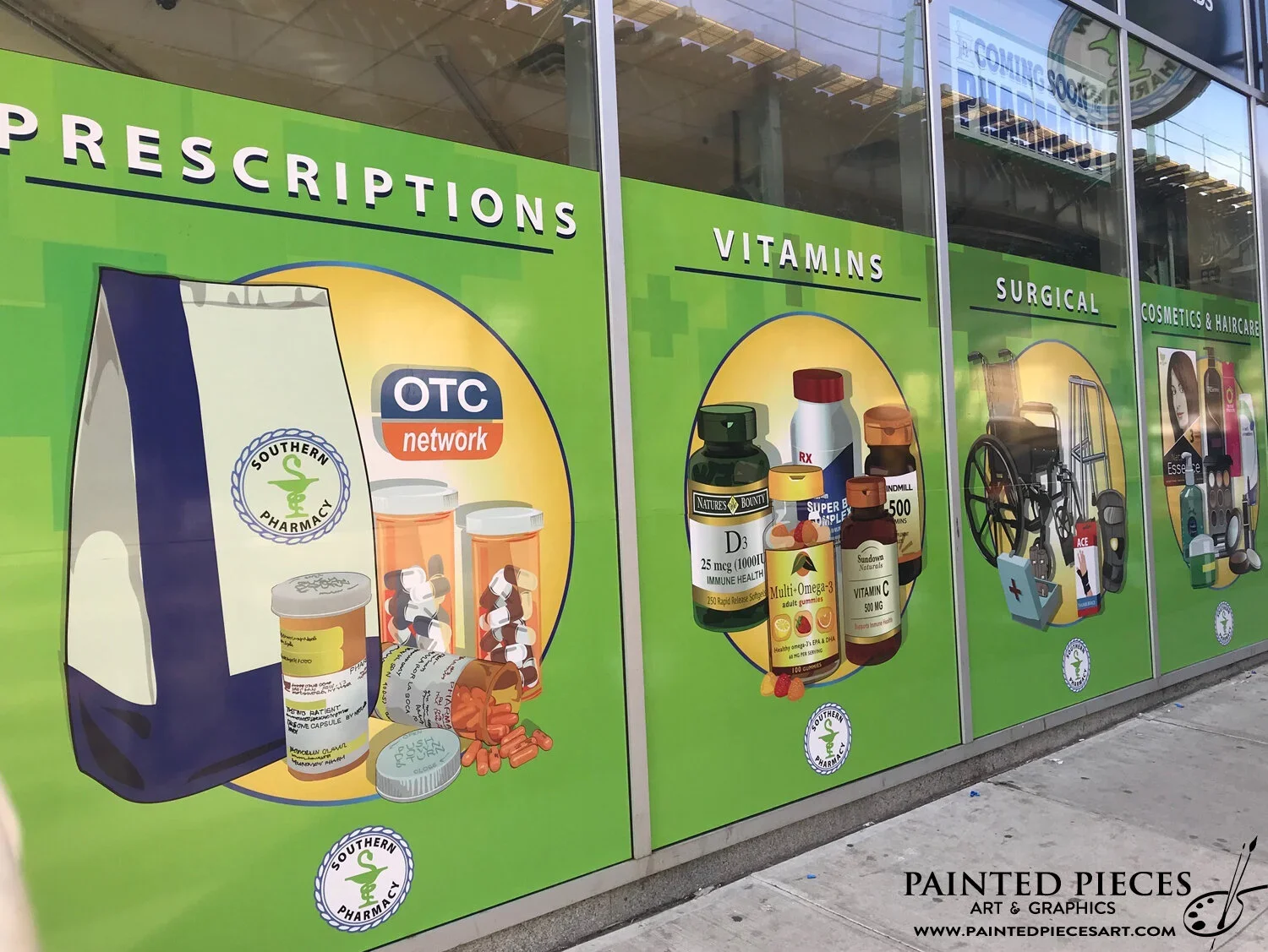 Painted Pieces Art & Graphics has been transforming pharmacy storefronts since 1994. We work with pharmacies across all 50 states designing around your storefront, your services, and your brand.